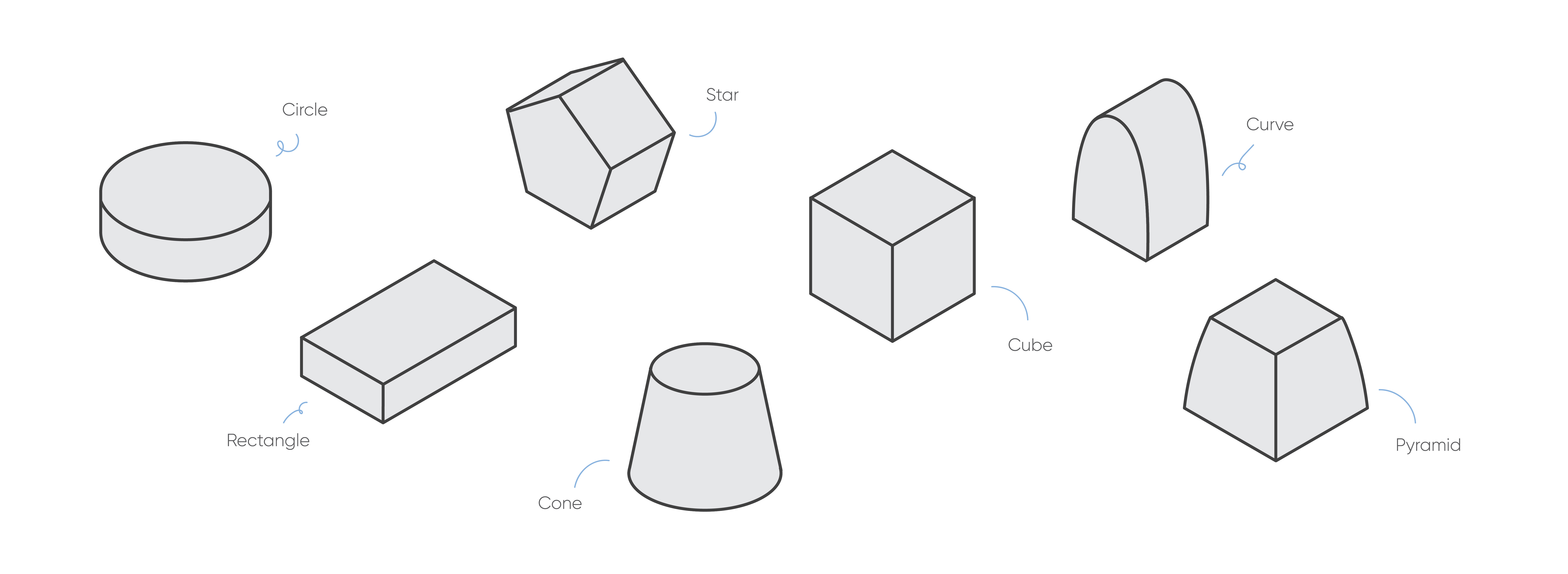 Explore 7 unique shapes designed for stacking, matching, and imaginative play.