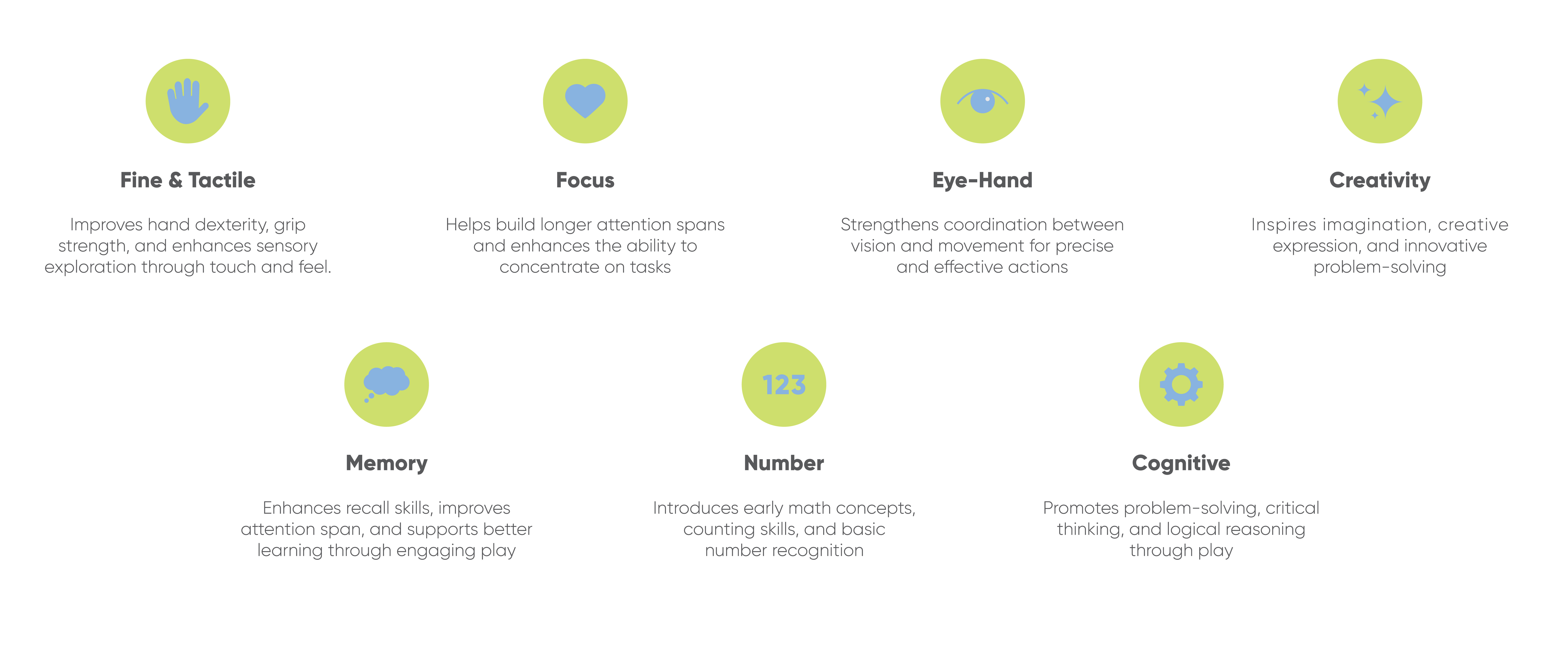 Enhance essential skills through play, encouraging creativity, focus, and cognitive growth.