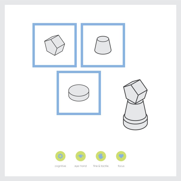 Match Me : Pick a card from the deck and search for the matching block in the bag. A fun challenge that sharpens memory, focus, and tactile skills through sensory exploration!